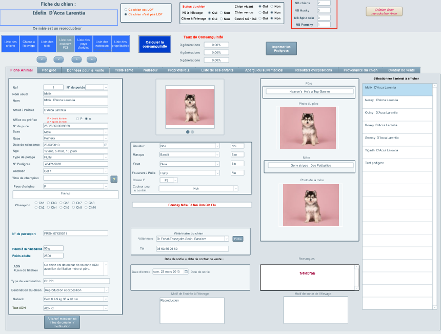 Il vous permet de suivre les dossiers des chiens, les saillies, les naissances, les ventes et les finances.