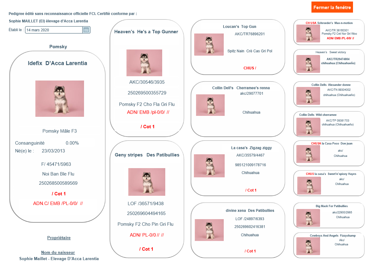 - Les versions avec pedigree affichent et permettent l'impression des pedigrees sur 3-4 et 5 générations avec le calcul de consanguinité.