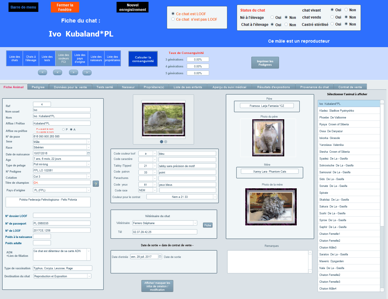 Un logiciel de gestion d'élevage félin avec pedigree sur 5 générations